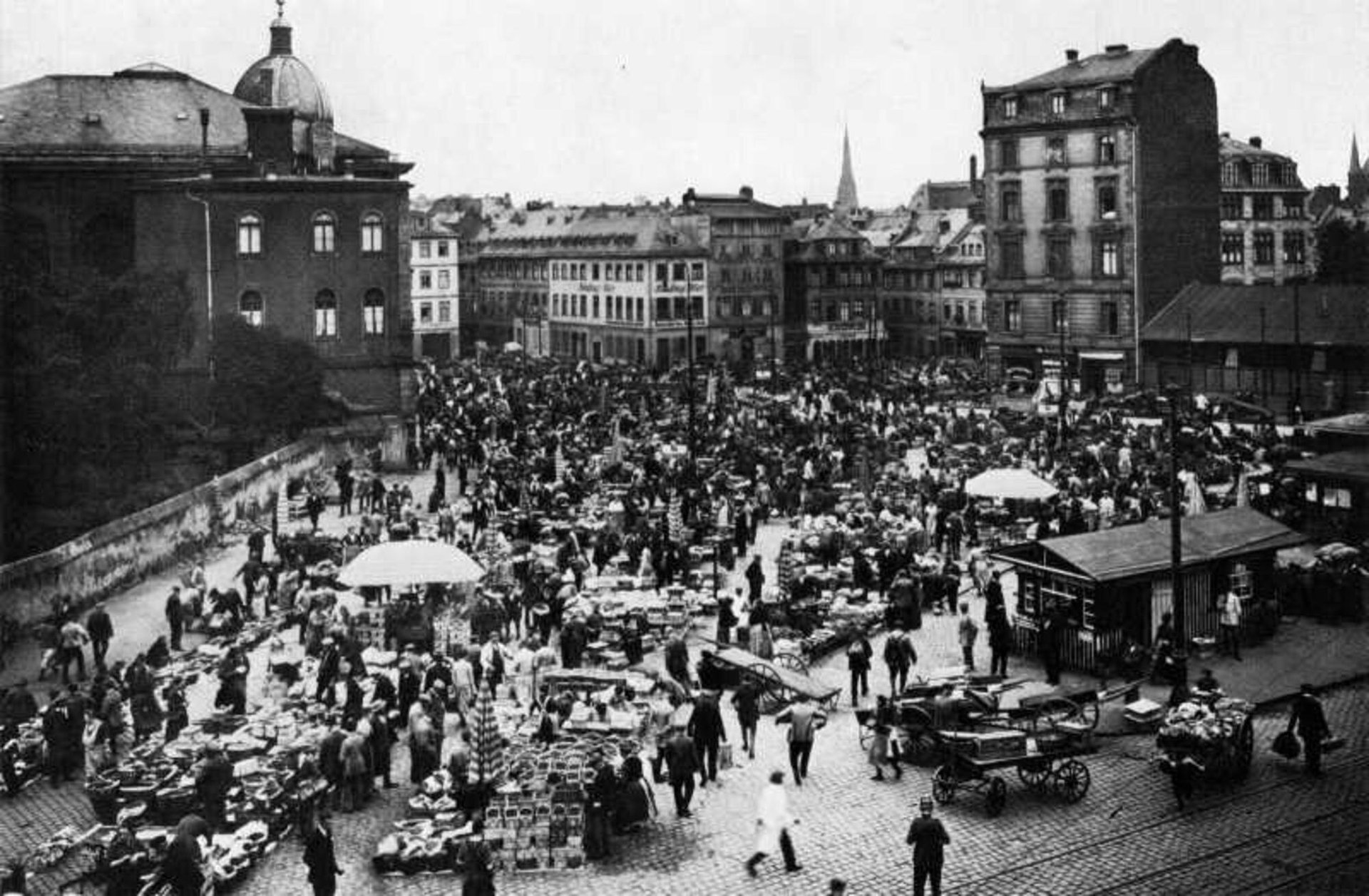At the southwestern end of the Jewish cemetery, a square developed in the Middle Ages, which became the center of Jewish life in Frankfurt from the 16th century through the Judenmarkt, which gave it its name. This city map by Julius Eduard Foltz-Eberle from 1852 shows the slaughterhouse, the hospital and the school building in addition to the inscription "Judenmarkt" and the neighboring cemetery.